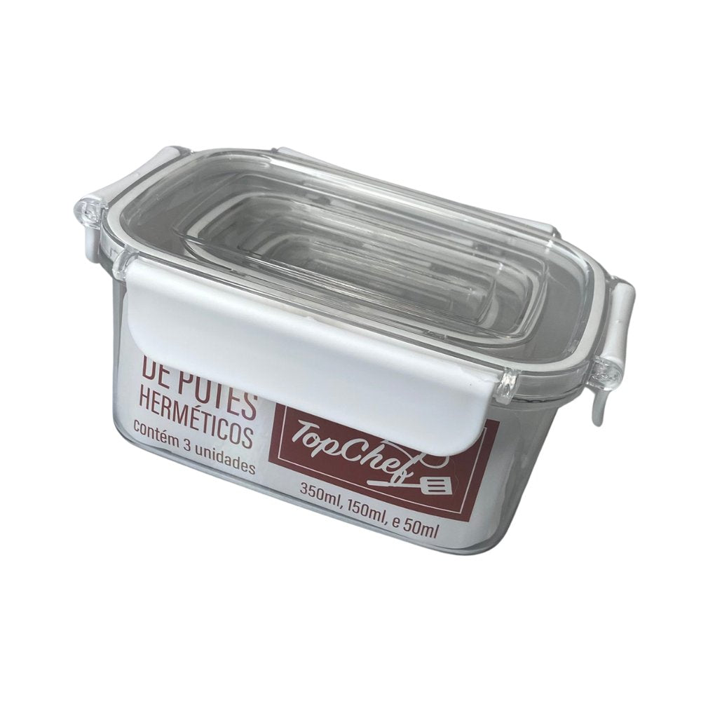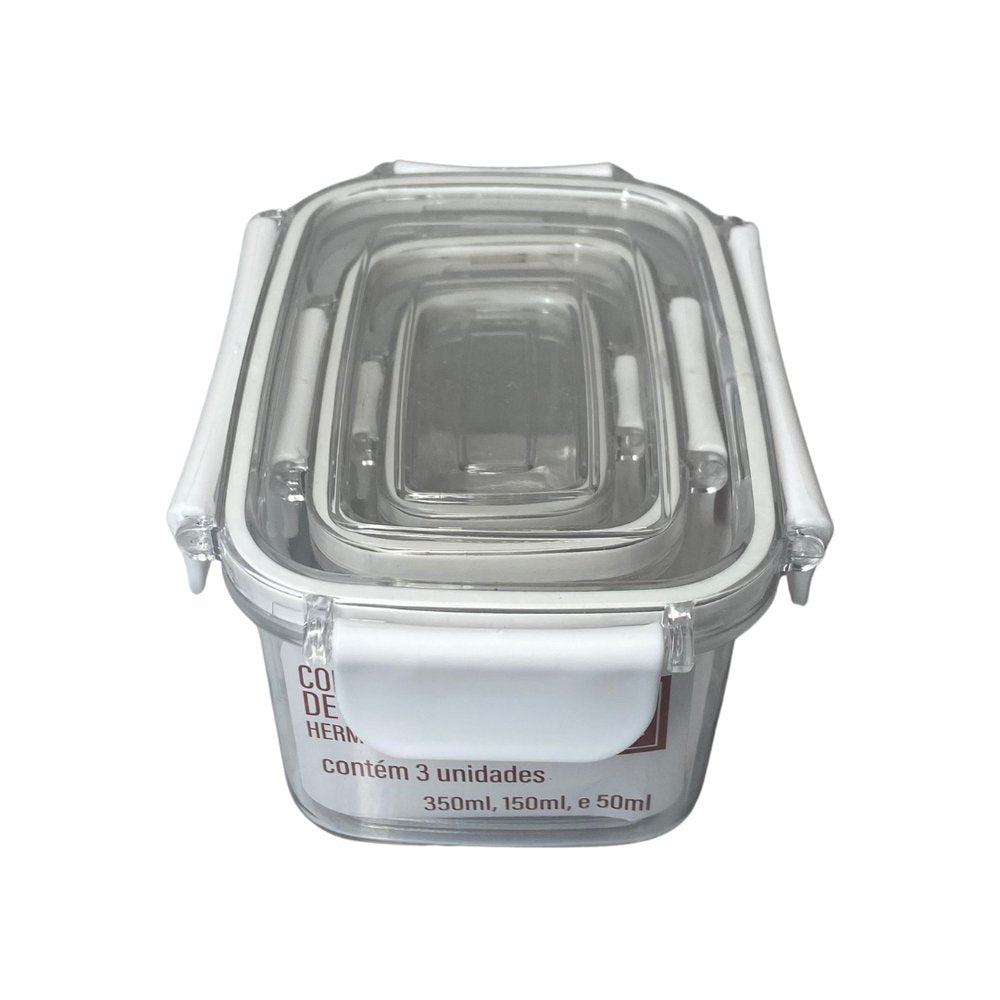 Solução definitiva para revolucionar a organização e a conservação de alimentos na sua casa. Este conjunto essencial de 03 Peças foi cuidadosamente dimensionado para otimizar seu armazenamento, oferecendo capacidades variadas de 50 ml, 150 ml e 350 ml, ideais para tudo, desde pequenas porções de mirtilos ou temperos até lanches maiores e sobras de refeições completas. Confeccionados em Polipropileno de alta durabilidade eles são atóxicos e totalmente transparentes, permitindo que você visualize o conteúdo instantaneamente, economizando tempo na hora de procurar na geladeira ou no armário. O grande diferencial reside no seu sistema de vedação hermética com robustas travas laterais, que cria uma barreira impenetrável contra o ar e a umidade. Isso garante a máxima conservação e o frescor prolongado dos seus alimentos, além de eliminar o risco de vazamentos e odores indesejados. Com design inteligente, as peças são perfeitamente empilháveis, aproveitando cada centímetro verticalmente, e apresentam dimensões práticas. Invista em praticidade e comece a reduzir o desperdício alimentar hoje mesmo com este kit versátil e fundamental para qualquer cozinha moderna