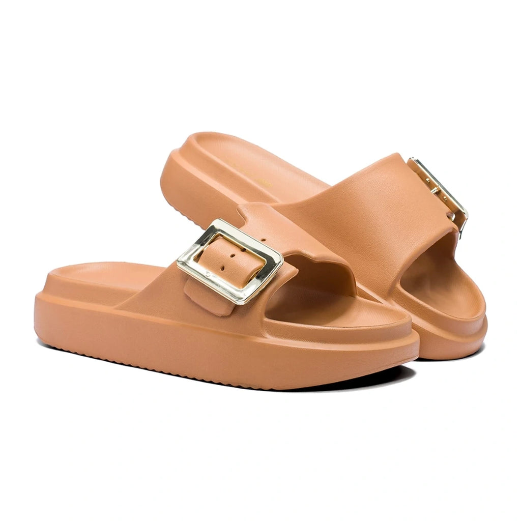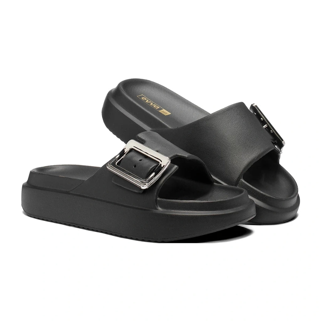O chinelo com enfeite metalizado é a escolha ideal para quem busca praticidade, conforto e um toque de estilo em um só calçado. Produzido em EVA super macio, ele garante a sensação de caminhar nas nuvens, enquanto o enfeite metalizado adiciona charme e sofisticação ao visual. Leve e versátil, é perfeito para acompanhar diferentes ocasiões do dia a dia.