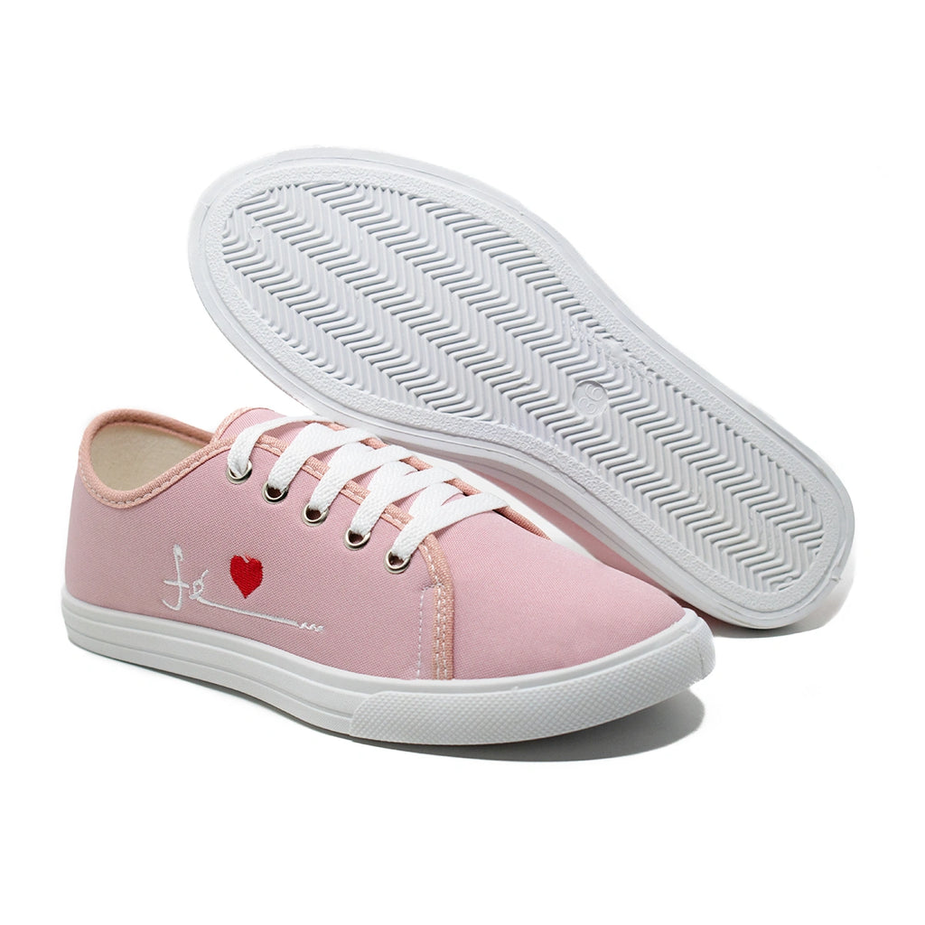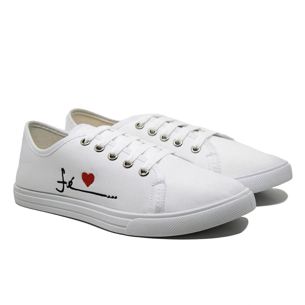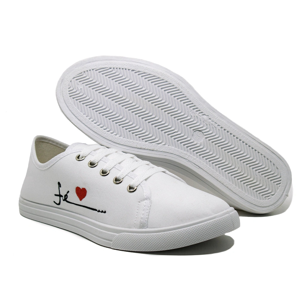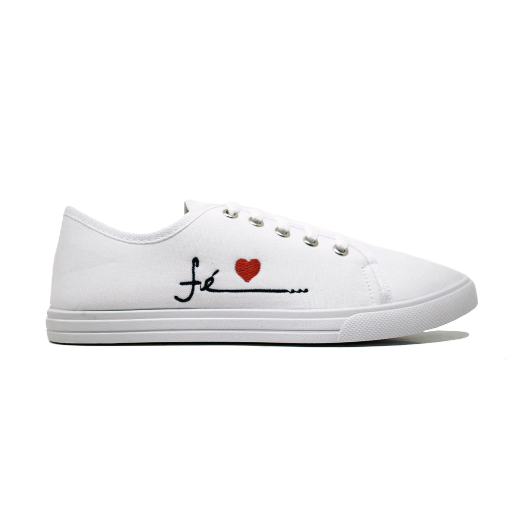 O Tênis Feminino Casual Fé é muito mais do que estilo — é uma mensagem que você carrega nos pés! Com bordado delicado da palavra “Fé” e um coração vermelho, ele une moda, conforto e significado. Feito em material têxtil leve e macio, proporciona uma pisada suave e ideal para o dia a dia. O design casual combina perfeitamente com diversos looks, transmitindo atitude e boas energias por onde você passar.