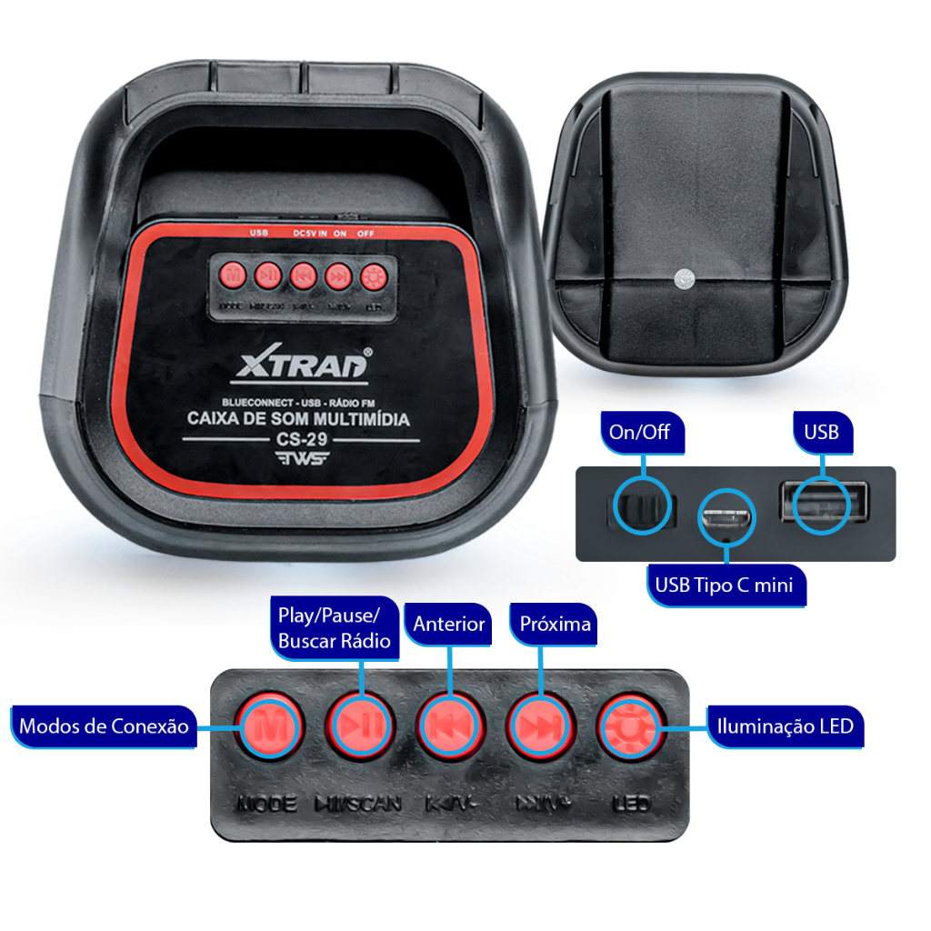 Conecte-se facilmente via Bluetooth(alcance de até 10 metros sem barreiras), aproveite o Rádio FM, utilize um Pendrive USB ou desfrute da funcionalidade TWS.