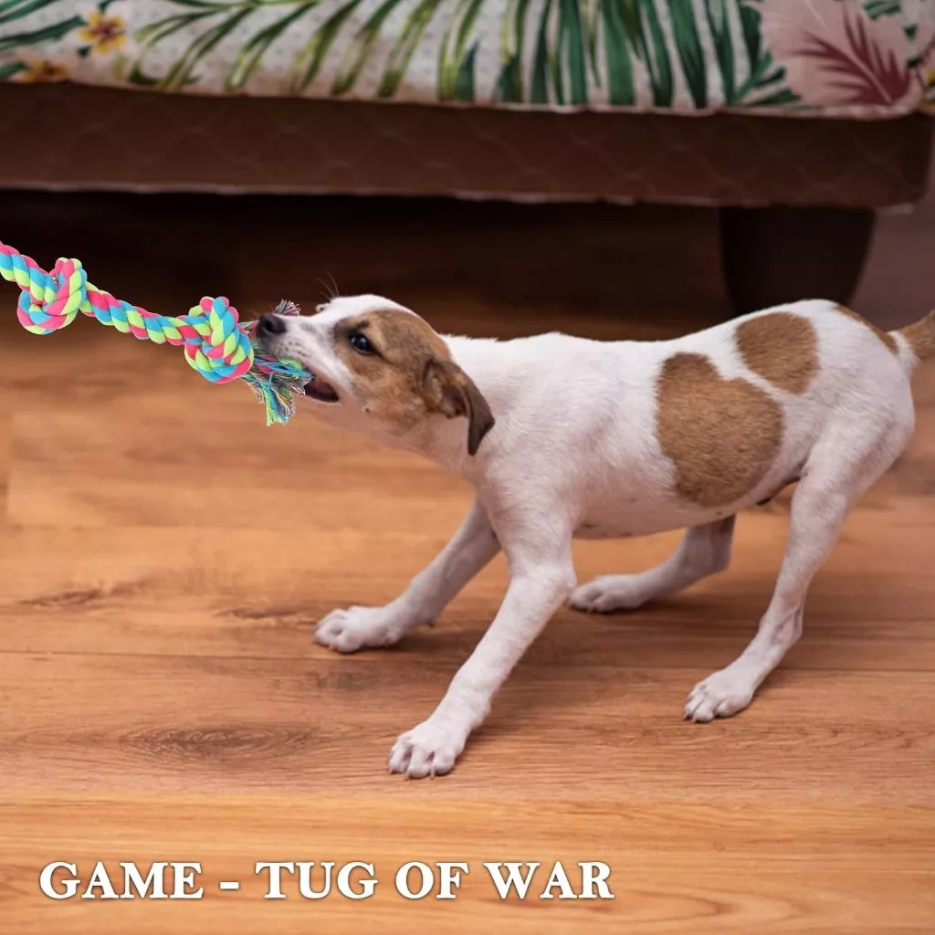 Os cães no processo de trituração dos dentes penetram profundamente nas fendas internas da corda para obter o efeito de limpeza profunda dos dentes